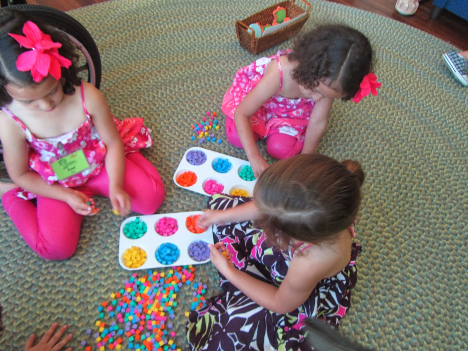 In the Oak Room color sorting was an activity that everyone enjoyed. The children also practices counting and creating patterns with the color blocks. The students also continue to use the stage to create plays, dances and bands. The performances continue to bring large groups of students into the room and practice collaboration.