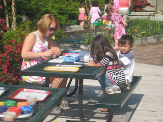 We also have the woodworking station outside. Children are using wood glue and different pieces of wood to build a sculpture. We have had this station for a few weeks now but the sculpture keeps growing. Every child (from Pod A and Pod B) stops by and adds on to the sculpture. Everyone is working together to build this piece of art. I am excited to see what it will look like by the end of the week!